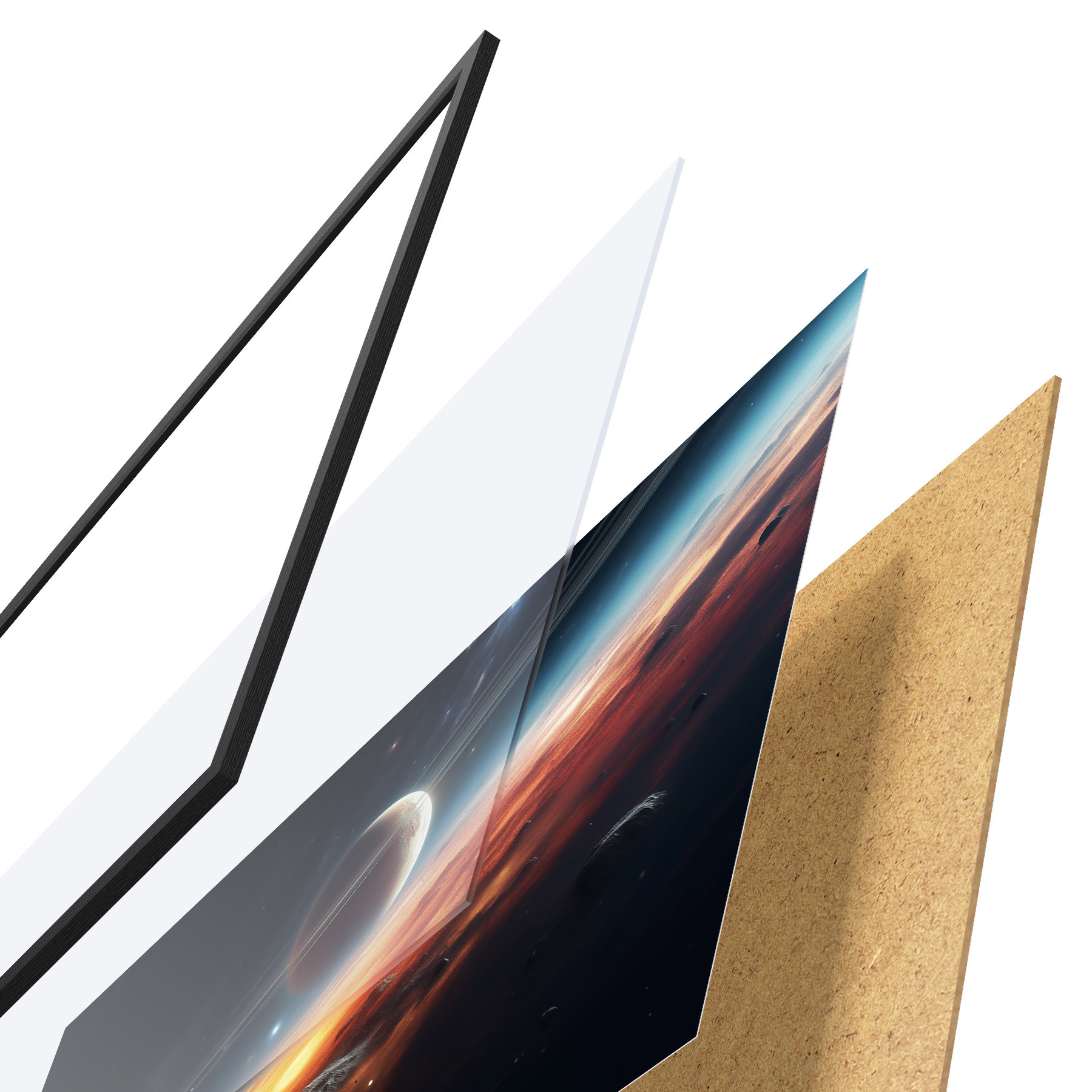 Plakatą sudaro rėmas, pleksiklas, atspausdintas vaizdas ir medžio drožlių plokštės pagrindas. Plakatą galima iš karto pakabinti ant sienos dėl kitoje pusėje esančių laikiklių.