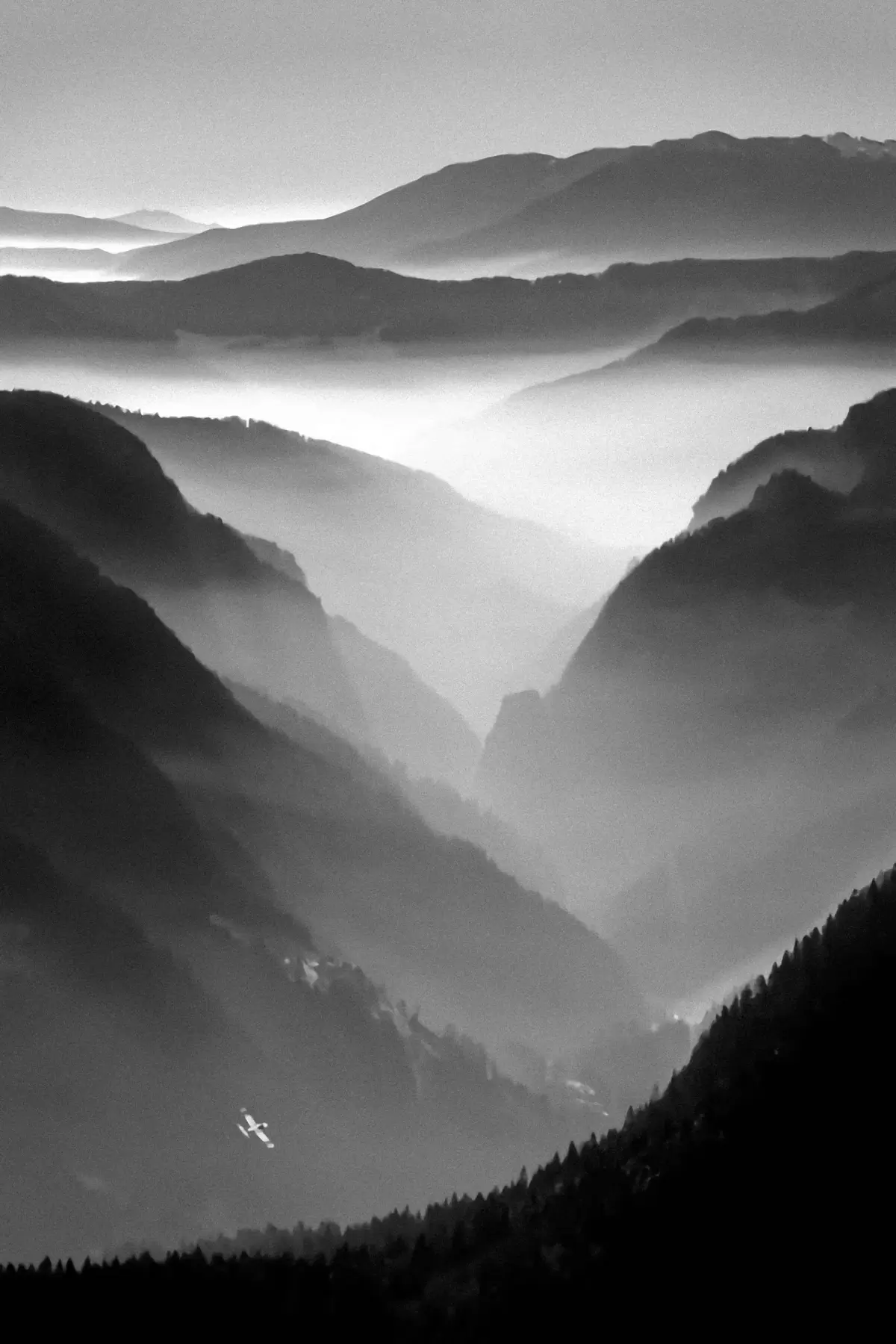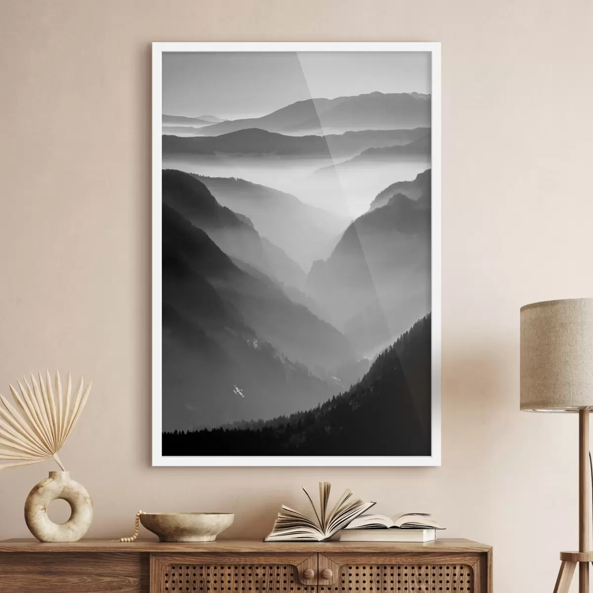 Plakatas Juodai baltos spalvos kalnų nuotrauka f36845