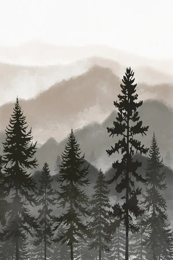 Plakatas Ramūs kalnai su aukštomis pušimis f37017v2