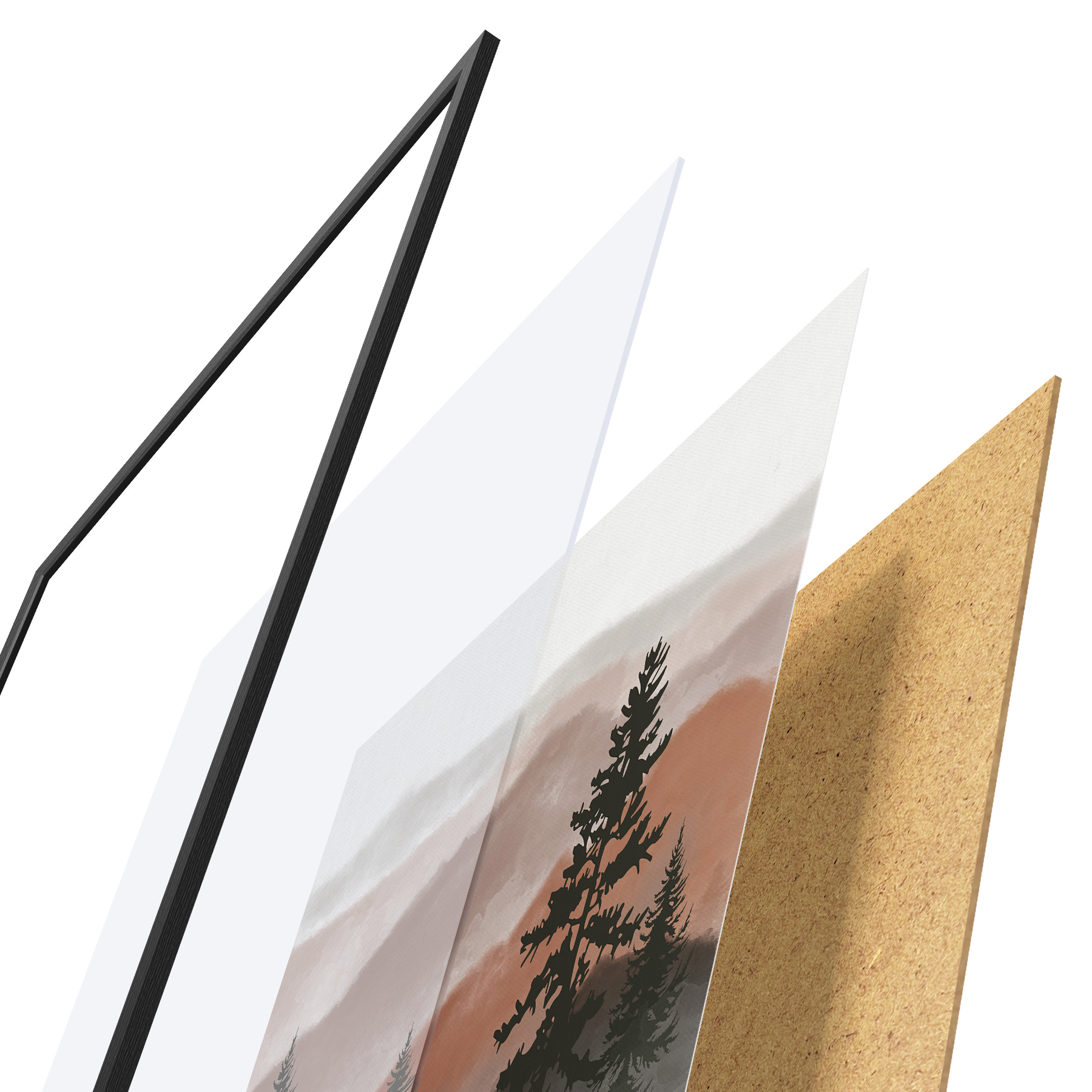 Plakatą sudaro rėmas, pleksiklas, atspausdintas vaizdas ir medžio drožlių plokštės pagrindas. Plakatą galima iš karto pakabinti ant sienos dėl kitoje pusėje esančių laikiklių.