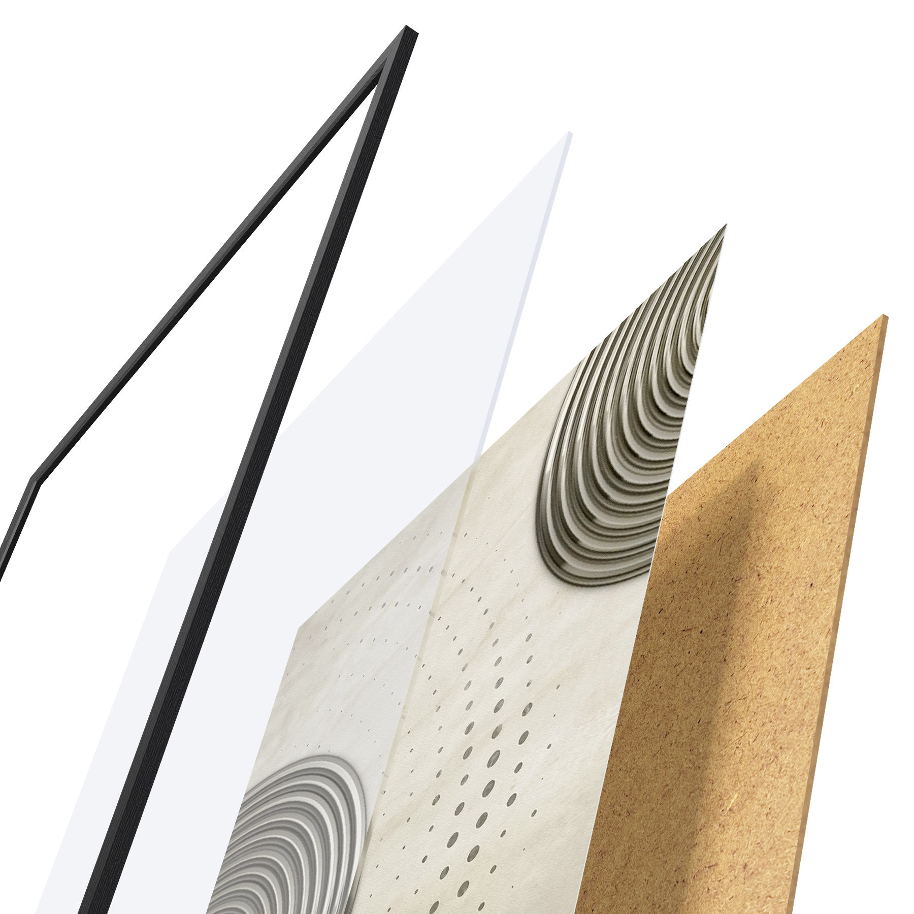 Plakatą sudaro rėmas, pleksiklas, atspausdintas vaizdas ir medžio drožlių plokštės pagrindas. Plakatą galima iš karto pakabinti ant sienos dėl kitoje pusėje esančių laikiklių.