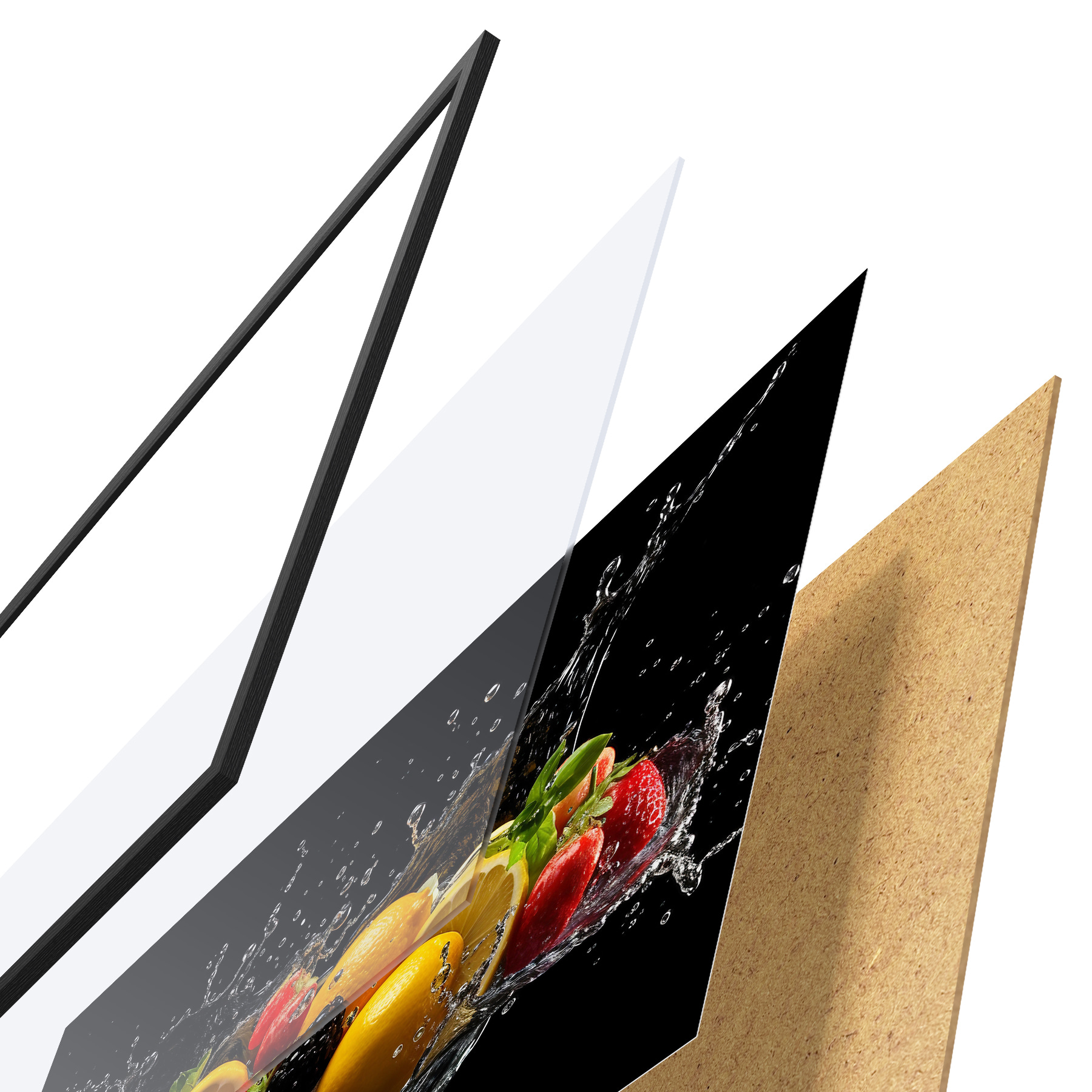 Plakatą sudaro rėmas, pleksiklas, atspausdintas vaizdas ir medžio drožlių plokštės pagrindas. Plakatą galima iš karto pakabinti ant sienos dėl kitoje pusėje esančių laikiklių.