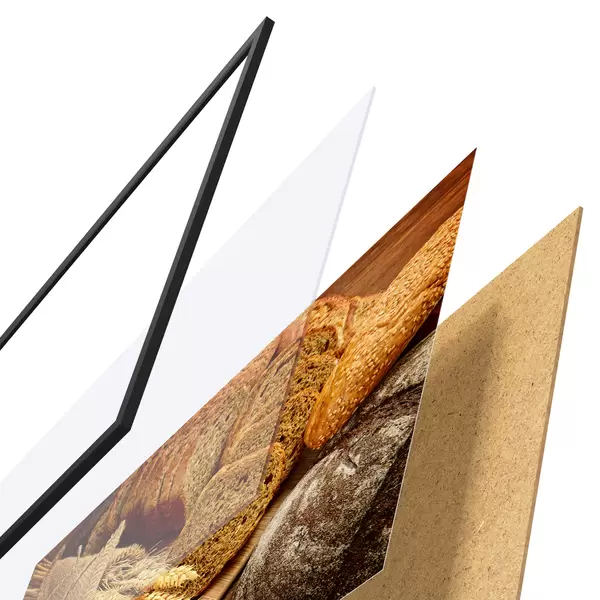 Plakatą sudaro rėmas, pleksiklas, atspausdintas vaizdas ir medžio drožlių plokštės pagrindas. Plakatą galima iš karto pakabinti ant sienos dėl kitoje pusėje esančių laikiklių.