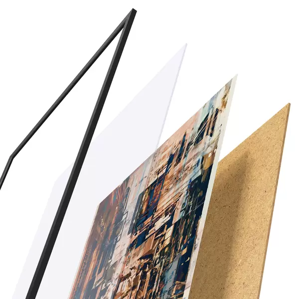 Plakatą sudaro rėmas, pleksiklas, atspausdintas vaizdas ir medžio drožlių plokštės pagrindas. Plakatą galima iš karto pakabinti ant sienos dėl kitoje pusėje esančių laikiklių.