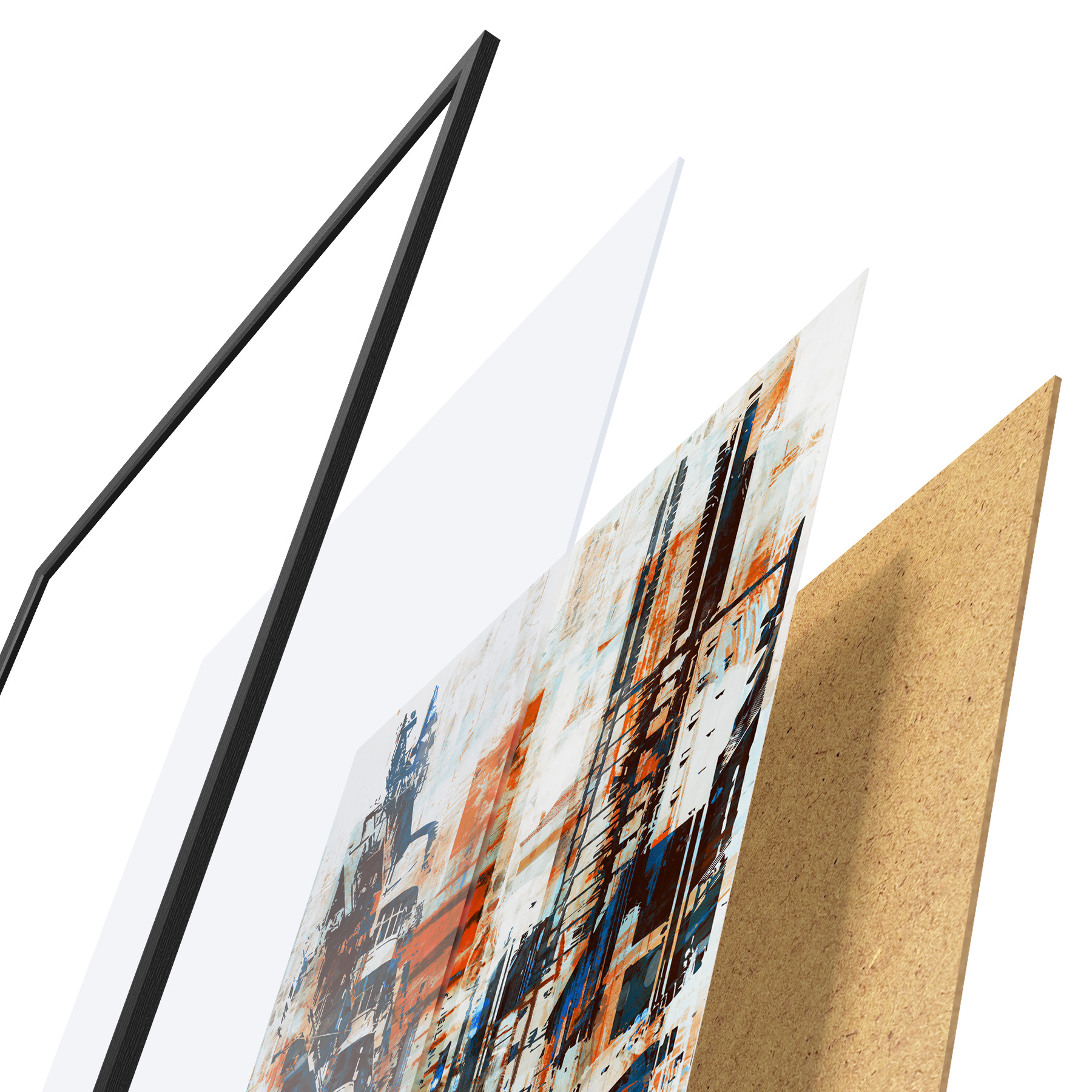 Plakatą sudaro rėmas, pleksiklas, atspausdintas vaizdas ir medžio drožlių plokštės pagrindas. Plakatą galima iš karto pakabinti ant sienos dėl kitoje pusėje esančių laikiklių.
