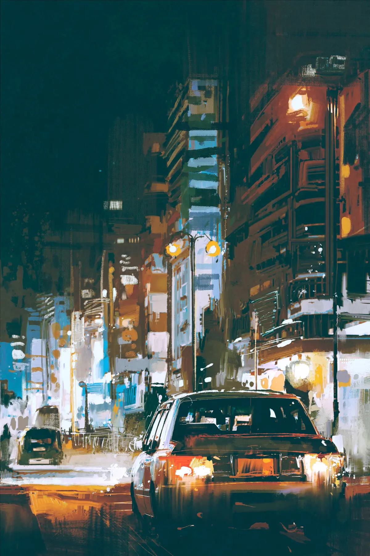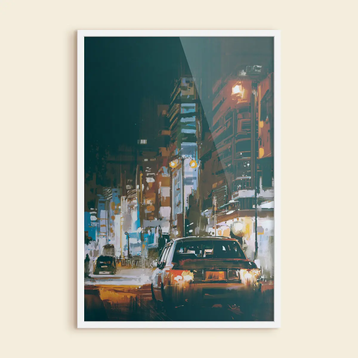 Plakatas Miesto žibintai apšviečia ramią gatvę f37085