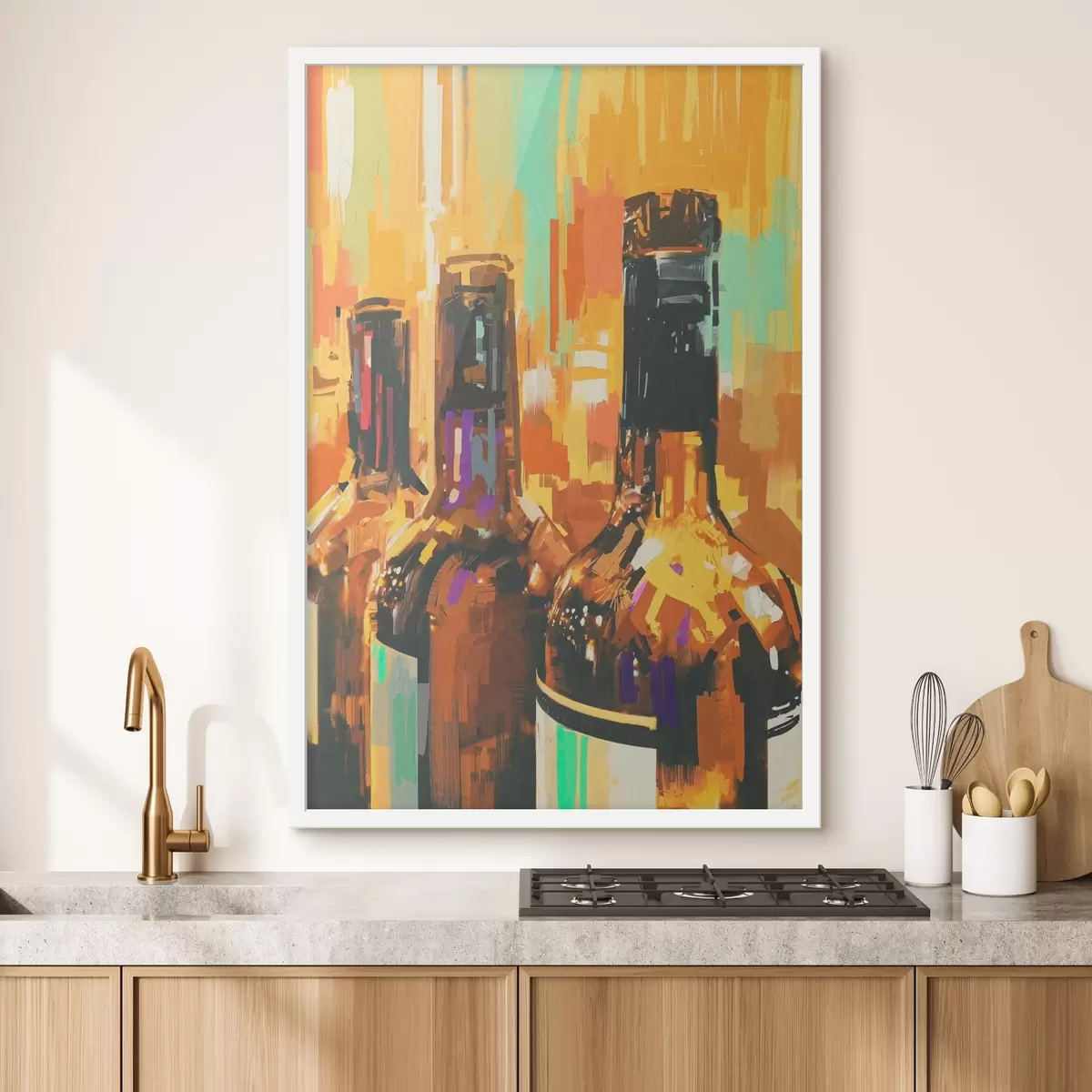 Plakatas Butelių grupė spalvotame fone Ne f37086