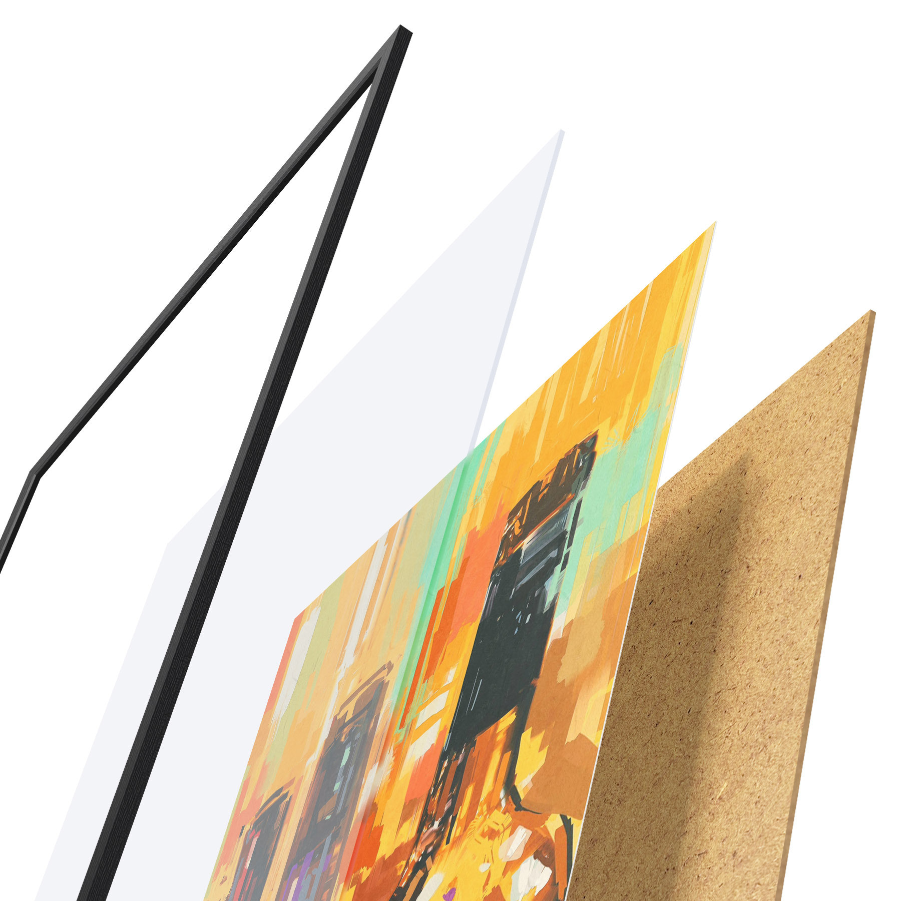 Plakatą sudaro rėmas, pleksiklas, atspausdintas vaizdas ir medžio drožlių plokštės pagrindas. Plakatą galima iš karto pakabinti ant sienos dėl kitoje pusėje esančių laikiklių.
