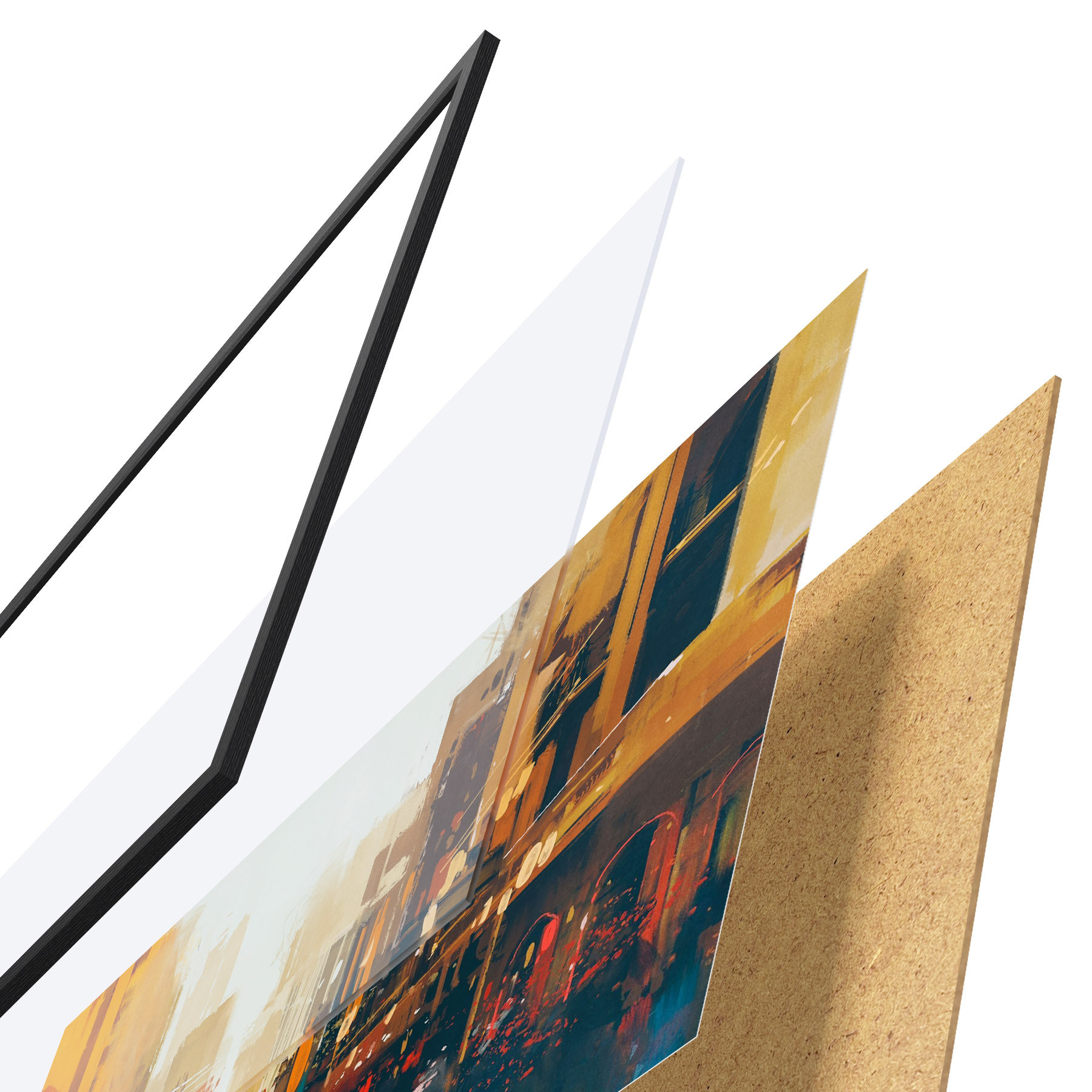 Plakatą sudaro rėmas, pleksiklas, atspausdintas vaizdas ir medžio drožlių plokštės pagrindas. Plakatą galima iš karto pakabinti ant sienos dėl kitoje pusėje esančių laikiklių.