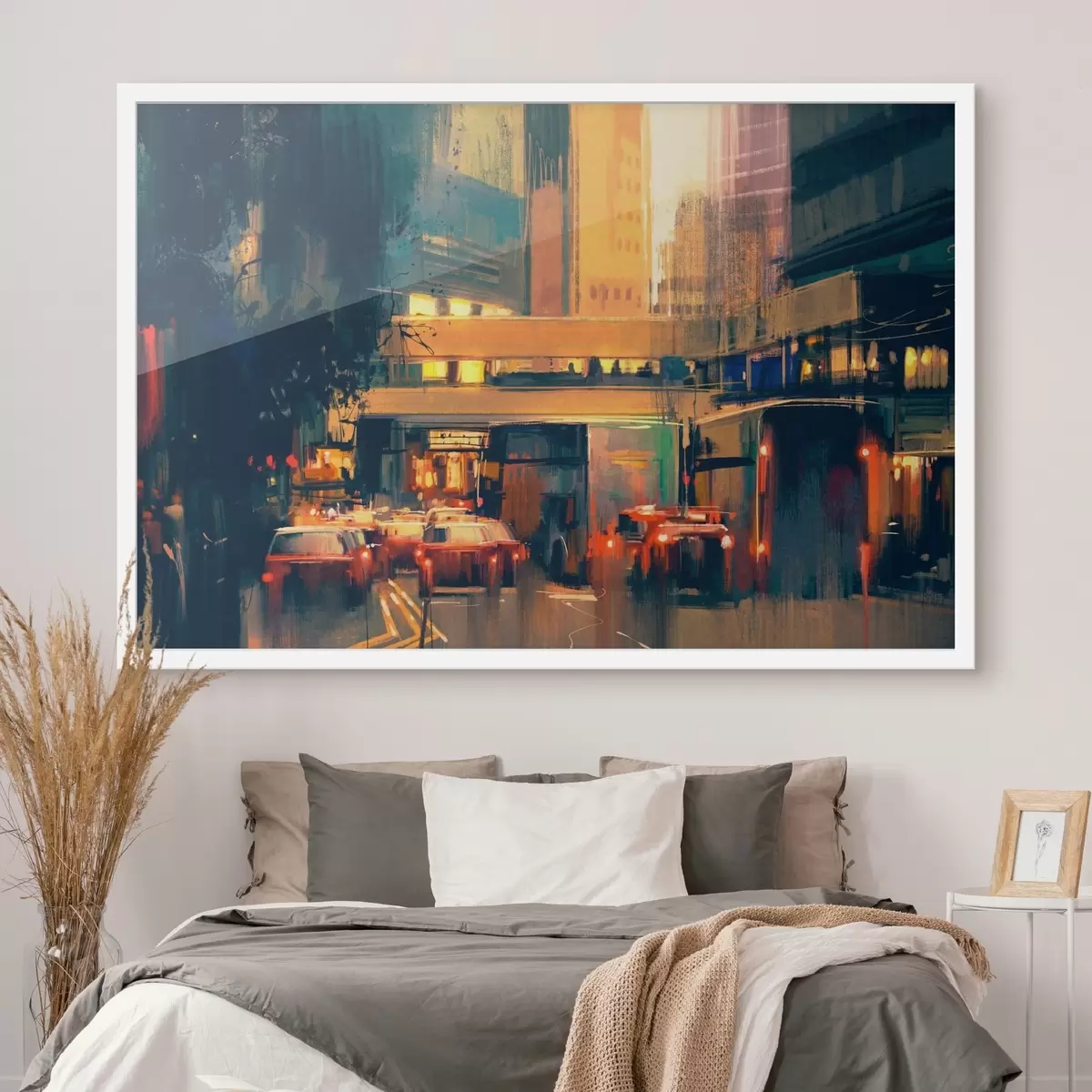 Plakatas Gatvė su automobiliais ir pastatais f37110