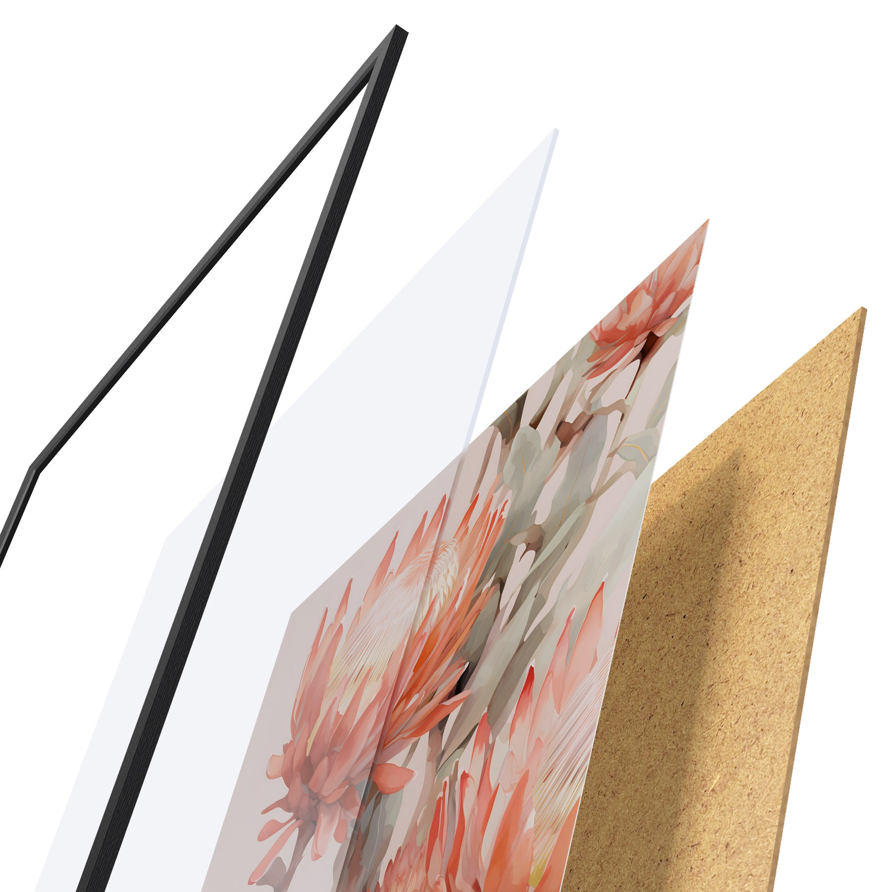 Plakatą sudaro rėmas, pleksiklas, atspausdintas vaizdas ir medžio drožlių plokštės pagrindas. Plakatą galima iš karto pakabinti ant sienos dėl kitoje pusėje esančių laikiklių.