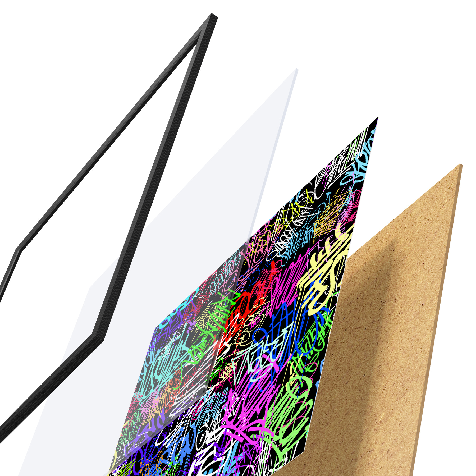 Plakatą sudaro rėmas, pleksiklas, atspausdintas vaizdas ir medžio drožlių plokštės pagrindas. Plakatą galima iš karto pakabinti ant sienos dėl kitoje pusėje esančių laikiklių.