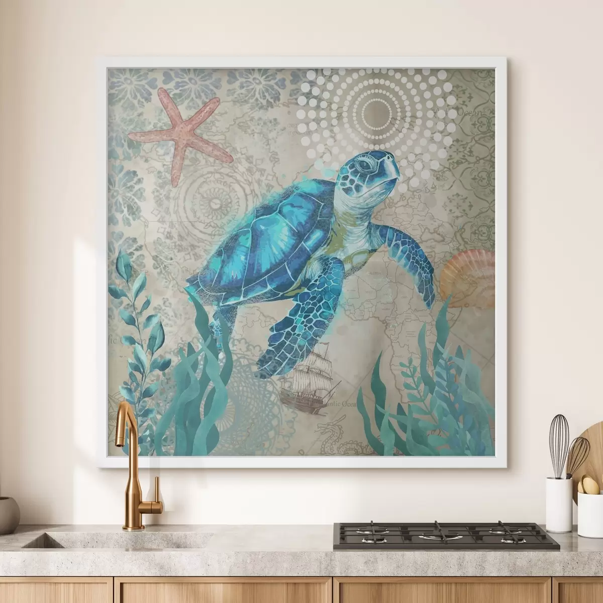 Plakatas Mėlynasis jūrų vėžlys, plaukiojantis vandenyne f37151