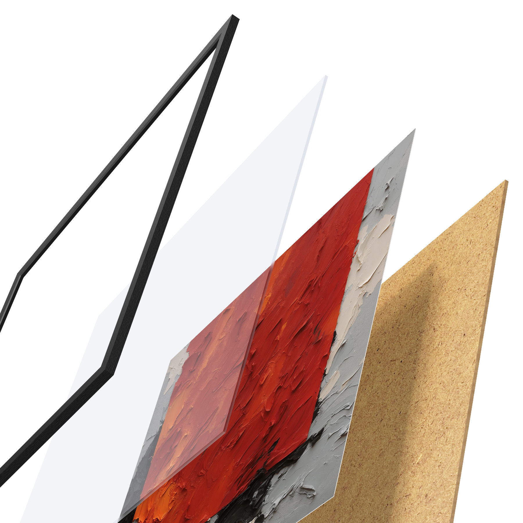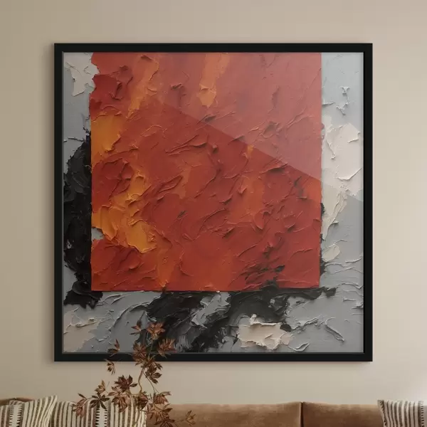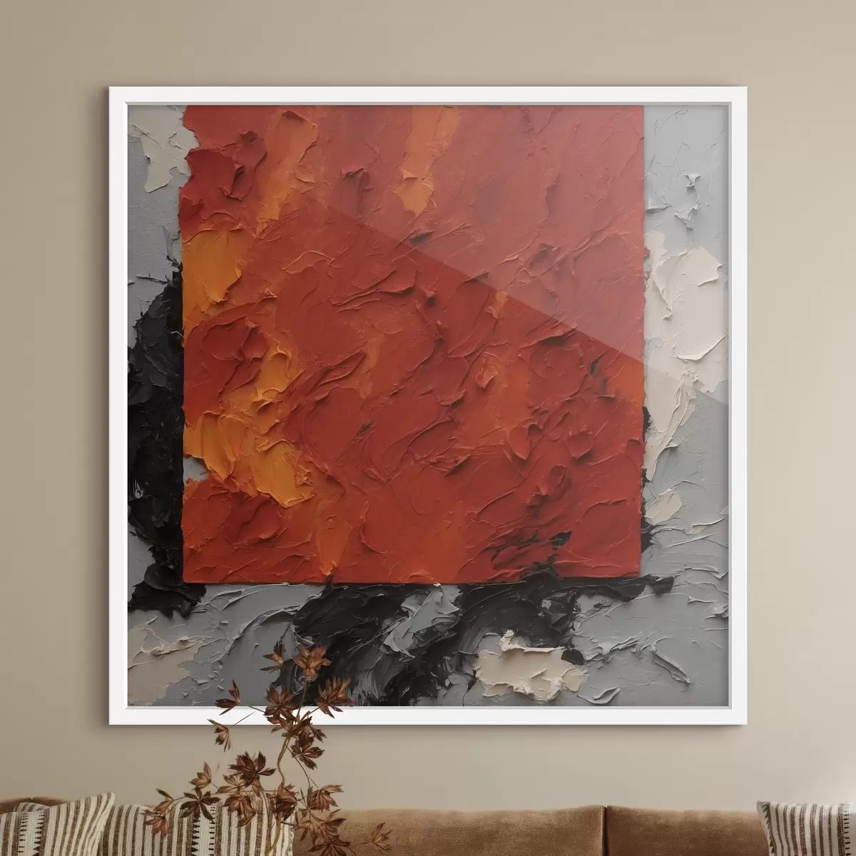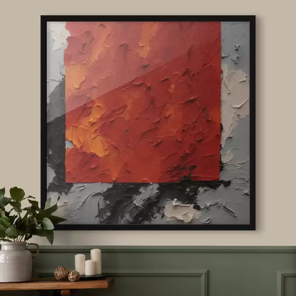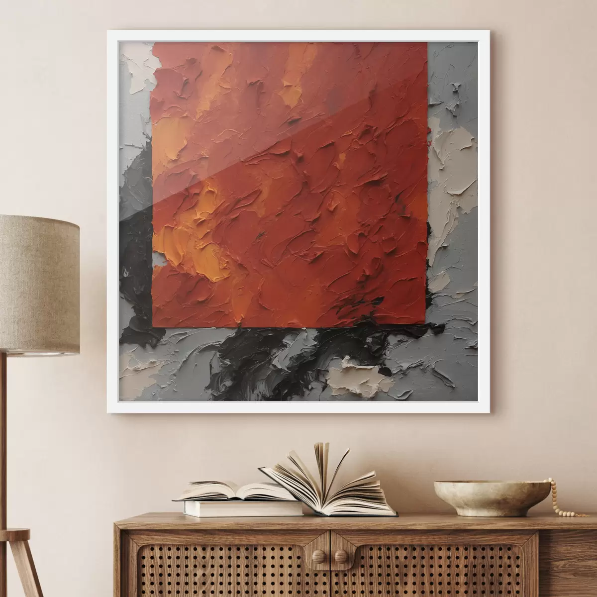 Plakatas Abstrakti aliejinė tapyba su raudonu kvadratu f37167