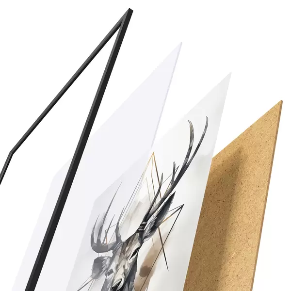 Plakatą sudaro rėmas, pleksiklas, atspausdintas vaizdas ir medžio drožlių plokštės pagrindas. Plakatą galima iš karto pakabinti ant sienos dėl kitoje pusėje esančių laikiklių.