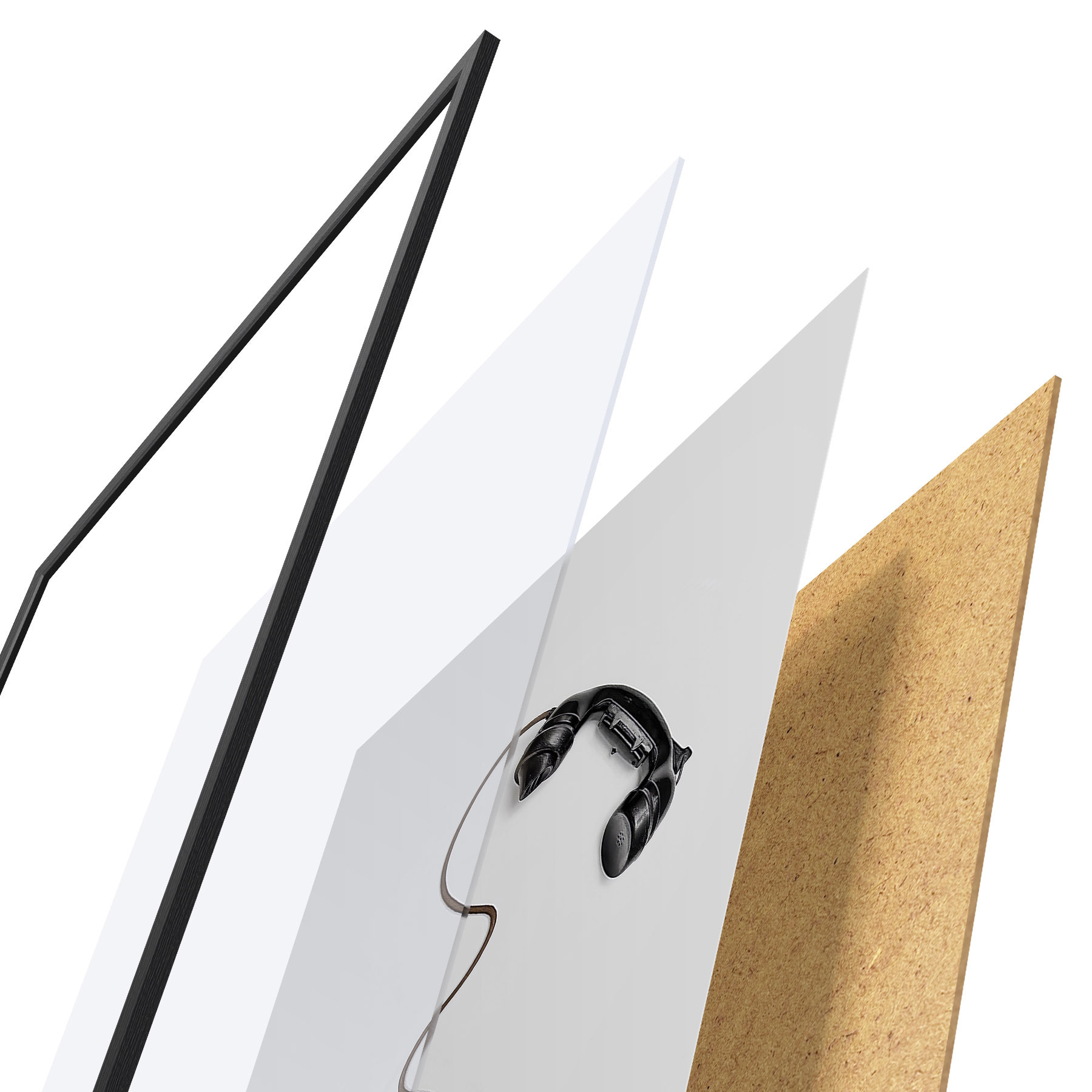 Plakatą sudaro rėmas, pleksiklas, atspausdintas vaizdas ir medžio drožlių plokštės pagrindas. Plakatą galima iš karto pakabinti ant sienos dėl kitoje pusėje esančių laikiklių.