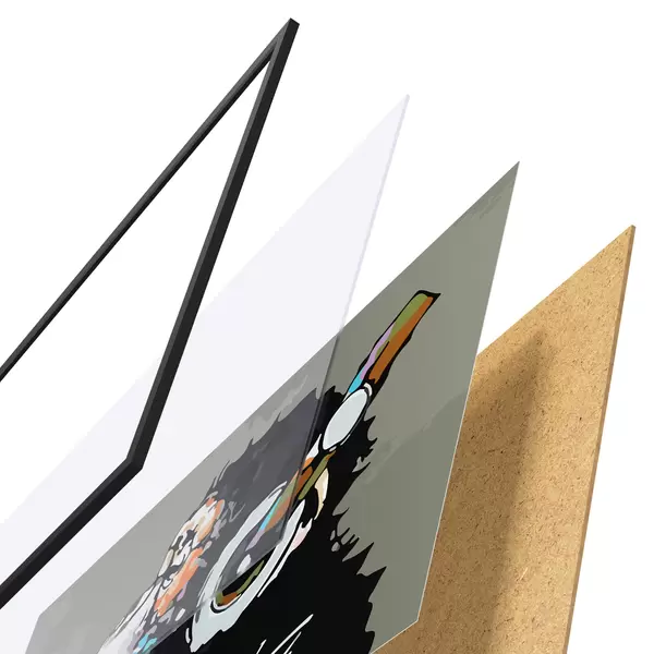Plakatą sudaro rėmas, pleksiklas, atspausdintas vaizdas ir medžio drožlių plokštės pagrindas. Plakatą galima iš karto pakabinti ant sienos dėl kitoje pusėje esančių laikiklių.