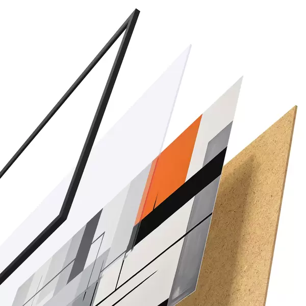 Plakatą sudaro rėmas, pleksiklas, atspausdintas vaizdas ir medžio drožlių plokštės pagrindas. Plakatą galima iš karto pakabinti ant sienos dėl kitoje pusėje esančių laikiklių.