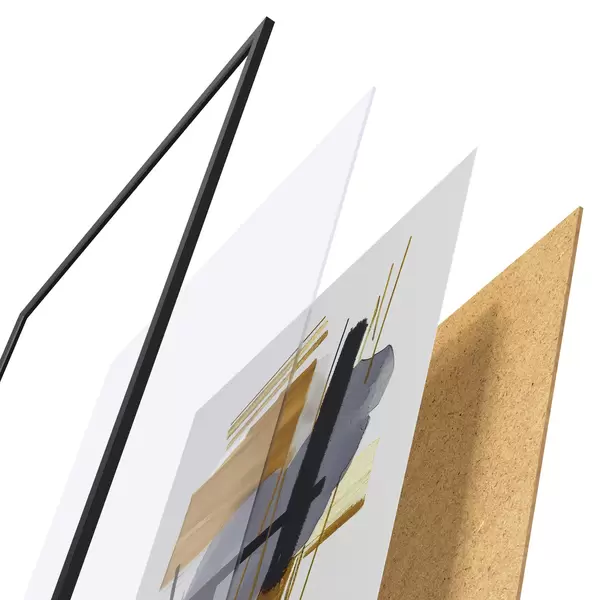 Plakatą sudaro rėmas, pleksiklas, atspausdintas vaizdas ir medžio drožlių plokštės pagrindas. Plakatą galima iš karto pakabinti ant sienos dėl kitoje pusėje esančių laikiklių.