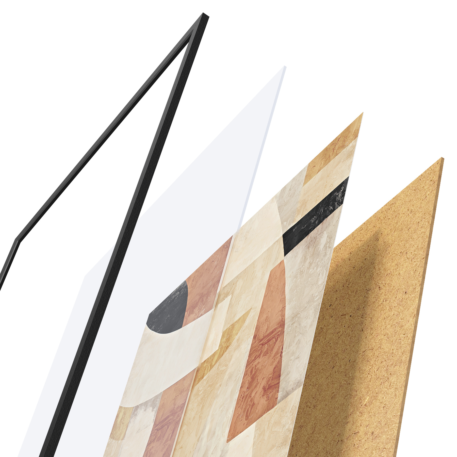 Plakatą sudaro rėmas, pleksiklas, atspausdintas vaizdas ir medžio drožlių plokštės pagrindas. Plakatą galima iš karto pakabinti ant sienos dėl kitoje pusėje esančių laikiklių.