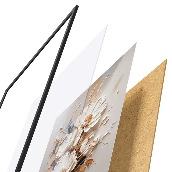 Plakatą sudaro rėmas, pleksiklas, atspausdintas vaizdas ir medžio drožlių plokštės pagrindas. Plakatą galima iš karto pakabinti ant sienos dėl kitoje pusėje esančių laikiklių.