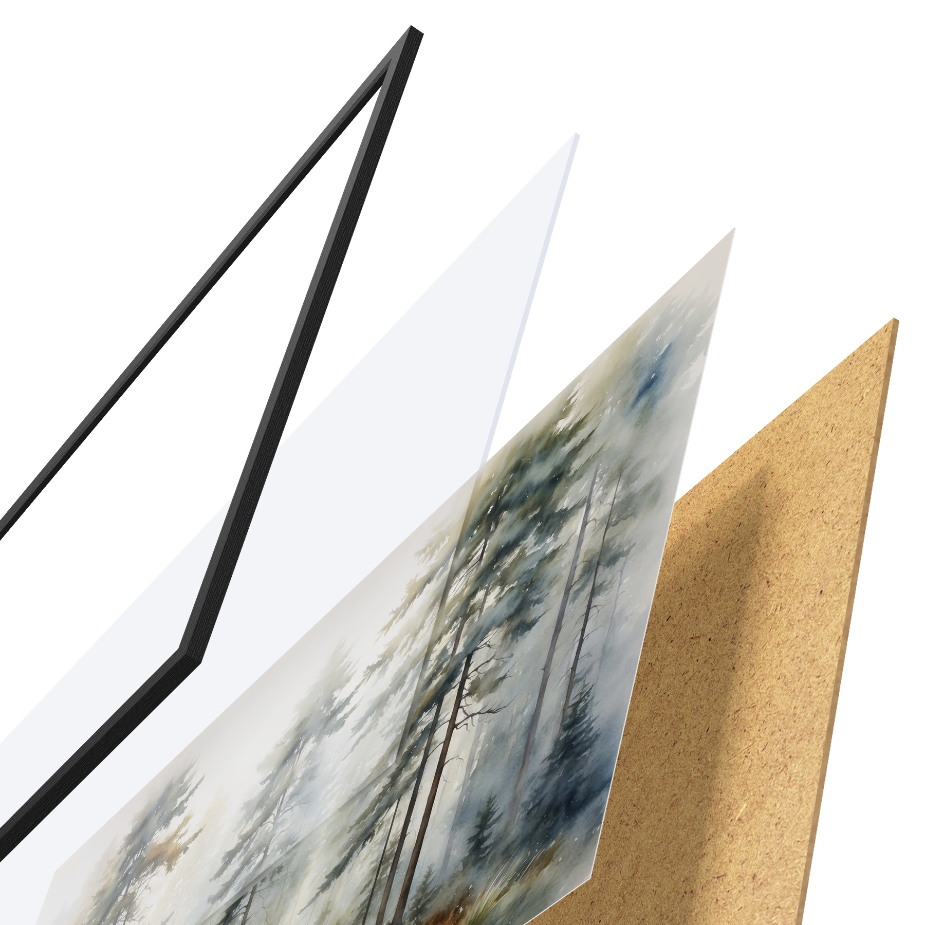 Plakatą sudaro rėmas, pleksiklas, atspausdintas vaizdas ir medžio drožlių plokštės pagrindas. Plakatą galima iš karto pakabinti ant sienos dėl kitoje pusėje esančių laikiklių.