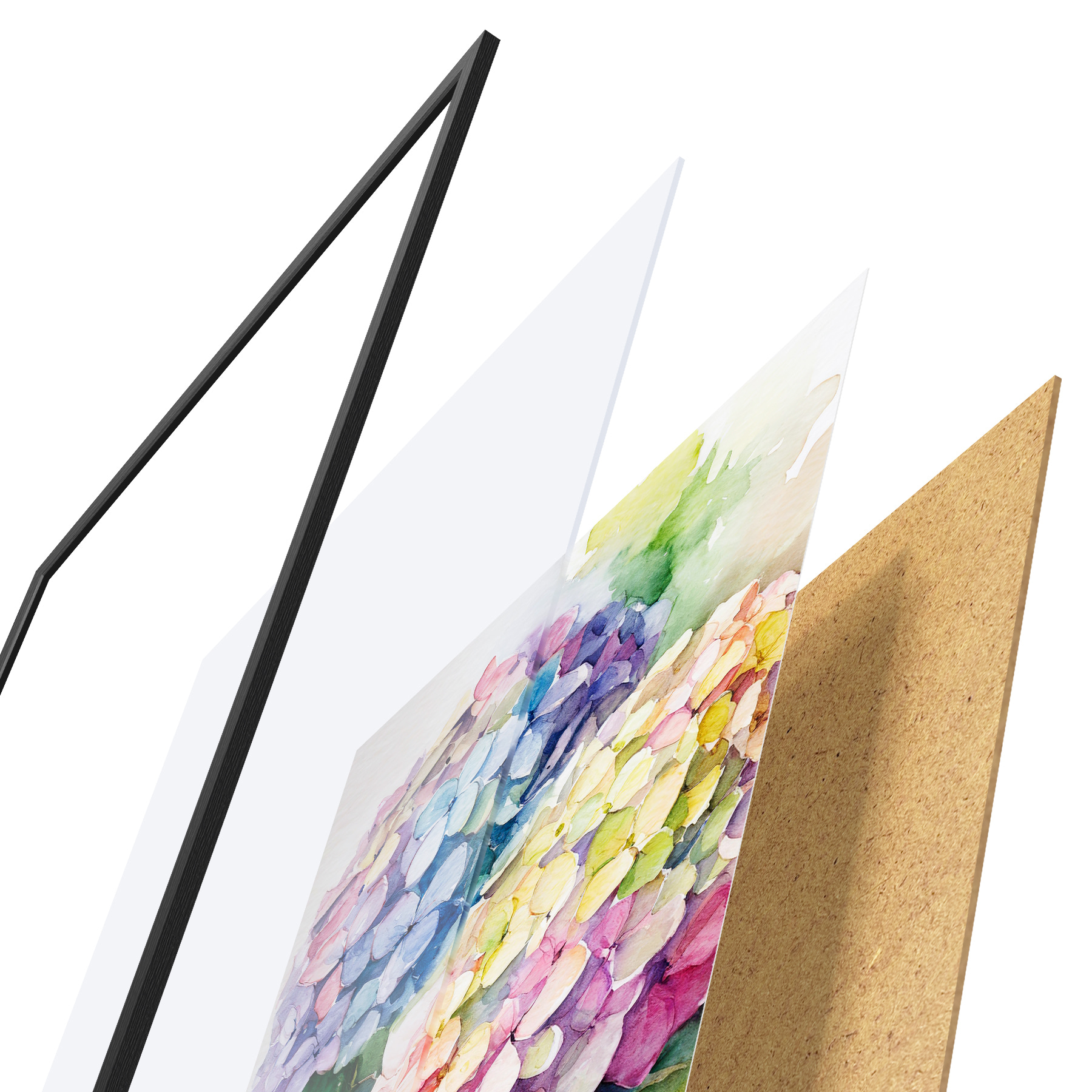 Plakatą sudaro rėmas, pleksiklas, atspausdintas vaizdas ir medžio drožlių plokštės pagrindas. Plakatą galima iš karto pakabinti ant sienos dėl kitoje pusėje esančių laikiklių.