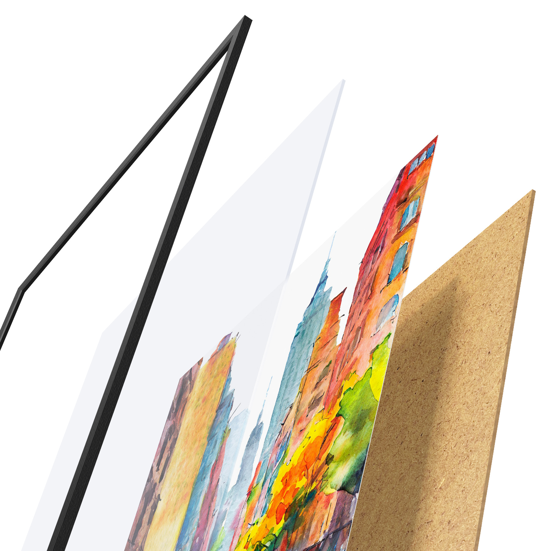 Plakatą sudaro rėmas, pleksiklas, atspausdintas vaizdas ir medžio drožlių plokštės pagrindas. Plakatą galima iš karto pakabinti ant sienos dėl kitoje pusėje esančių laikiklių.
