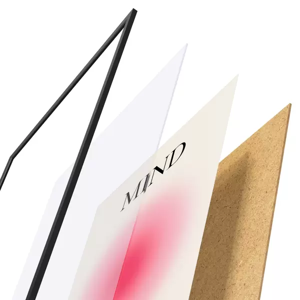 Plakatą sudaro rėmas, pleksiklas, atspausdintas vaizdas ir medžio drožlių plokštės pagrindas. Plakatą galima iš karto pakabinti ant sienos dėl kitoje pusėje esančių laikiklių.