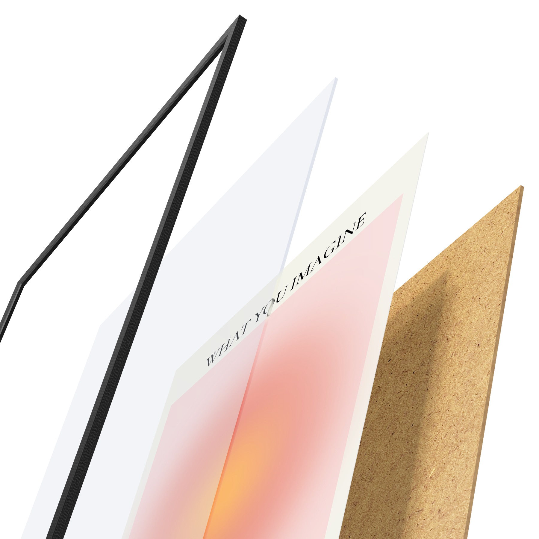 Plakatą sudaro rėmas, pleksiklas, atspausdintas vaizdas ir medžio drožlių plokštės pagrindas. Plakatą galima iš karto pakabinti ant sienos dėl kitoje pusėje esančių laikiklių.