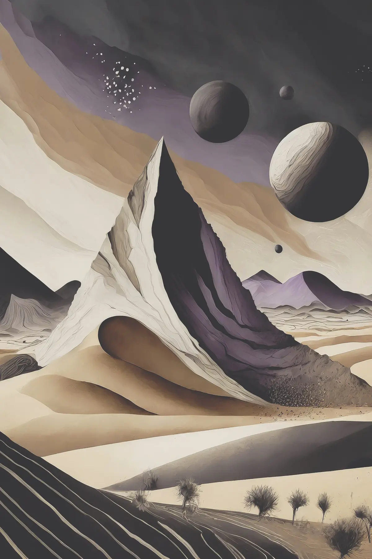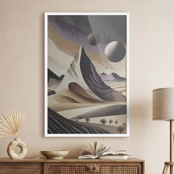 Plakatas Siurrealistinis kraštovaizdis su tolimais dangaus kūnais Ne f37362
