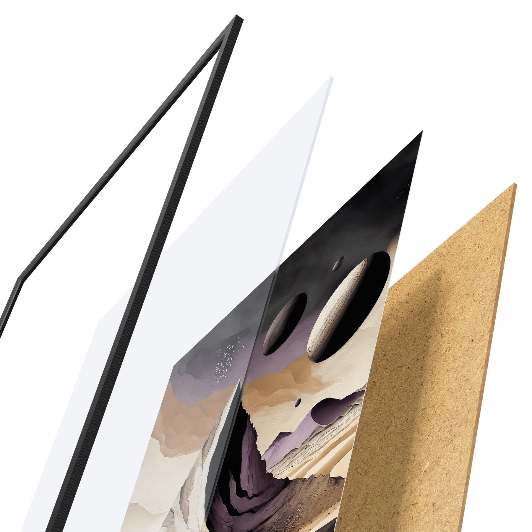 Plakatą sudaro rėmas, pleksiklas, atspausdintas vaizdas ir medžio drožlių plokštės pagrindas. Plakatą galima iš karto pakabinti ant sienos dėl kitoje pusėje esančių laikiklių.