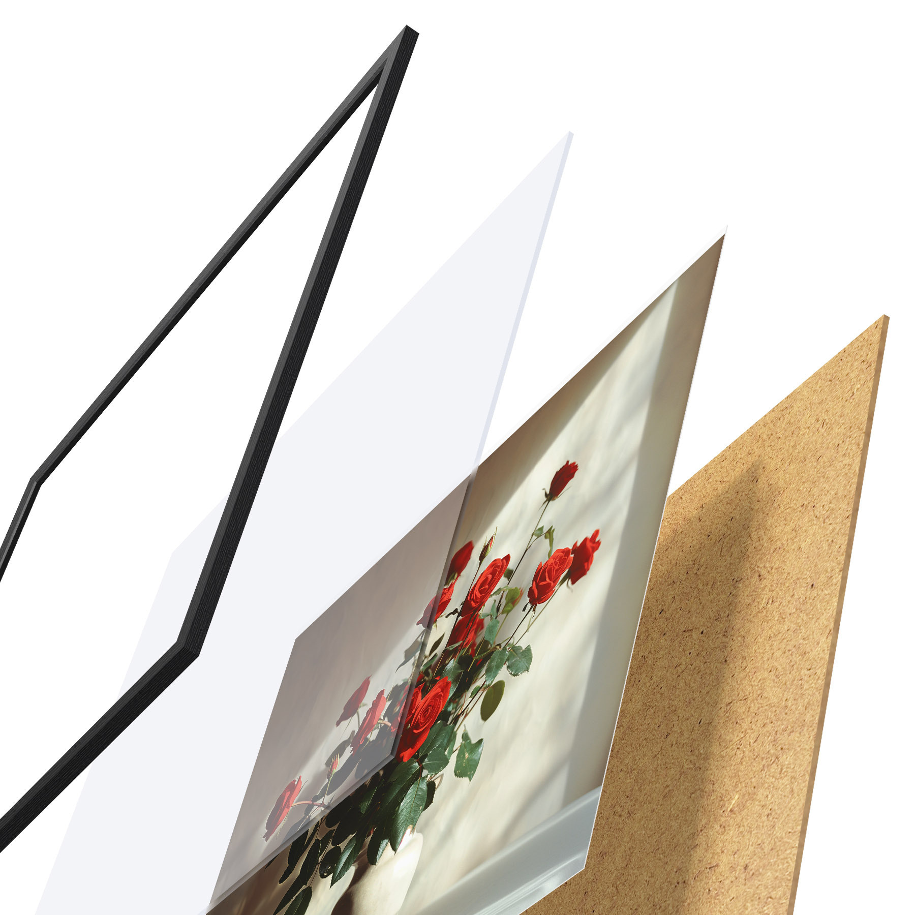 Plakatą sudaro rėmas, pleksiklas, atspausdintas vaizdas ir medžio drožlių plokštės pagrindas. Plakatą galima iš karto pakabinti ant sienos dėl kitoje pusėje esančių laikiklių.
