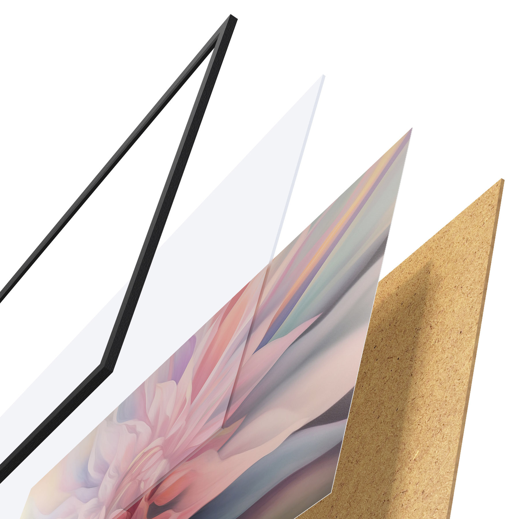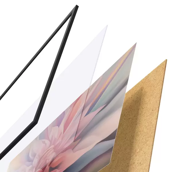 Plakatą sudaro rėmas, pleksiklas, atspausdintas vaizdas ir medžio drožlių plokštės pagrindas. Plakatą galima iš karto pakabinti ant sienos dėl kitoje pusėje esančių laikiklių.