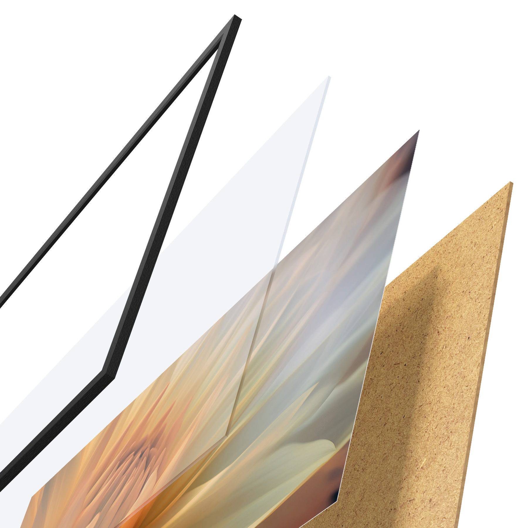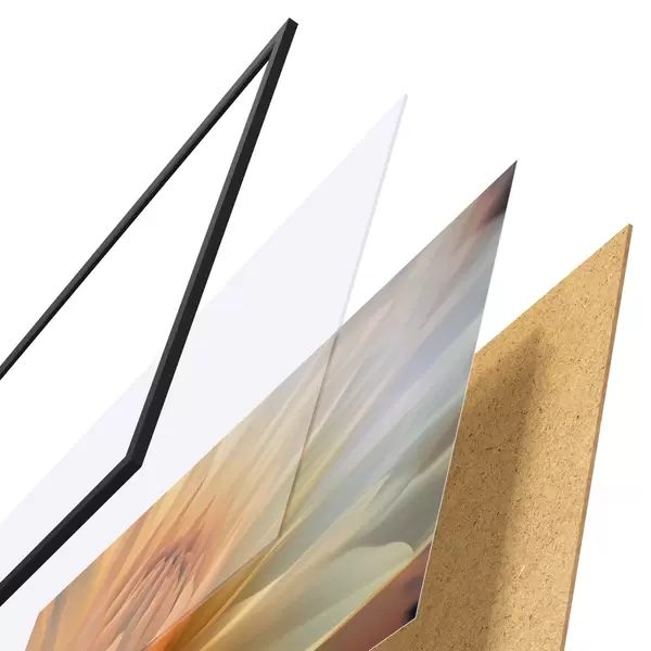 Plakatą sudaro rėmas, pleksiklas, atspausdintas vaizdas ir medžio drožlių plokštės pagrindas. Plakatą galima iš karto pakabinti ant sienos dėl kitoje pusėje esančių laikiklių.