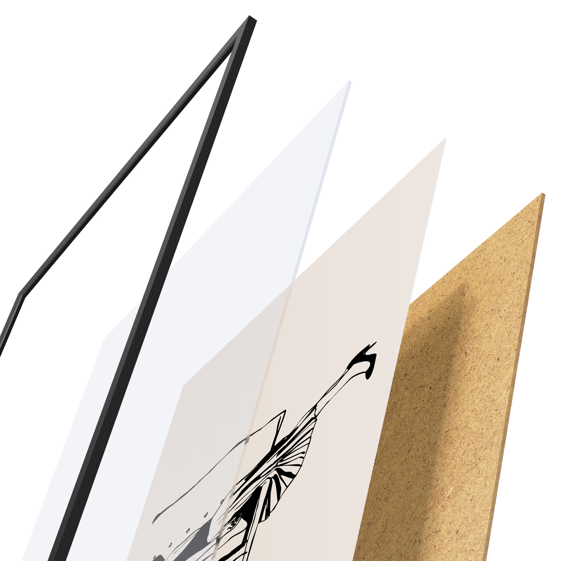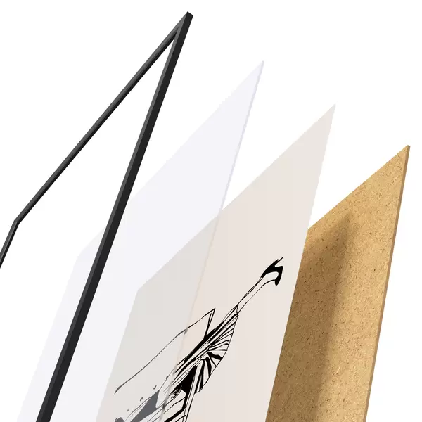 Plakatą sudaro rėmas, pleksiklas, atspausdintas vaizdas ir medžio drožlių plokštės pagrindas. Plakatą galima iš karto pakabinti ant sienos dėl kitoje pusėje esančių laikiklių.