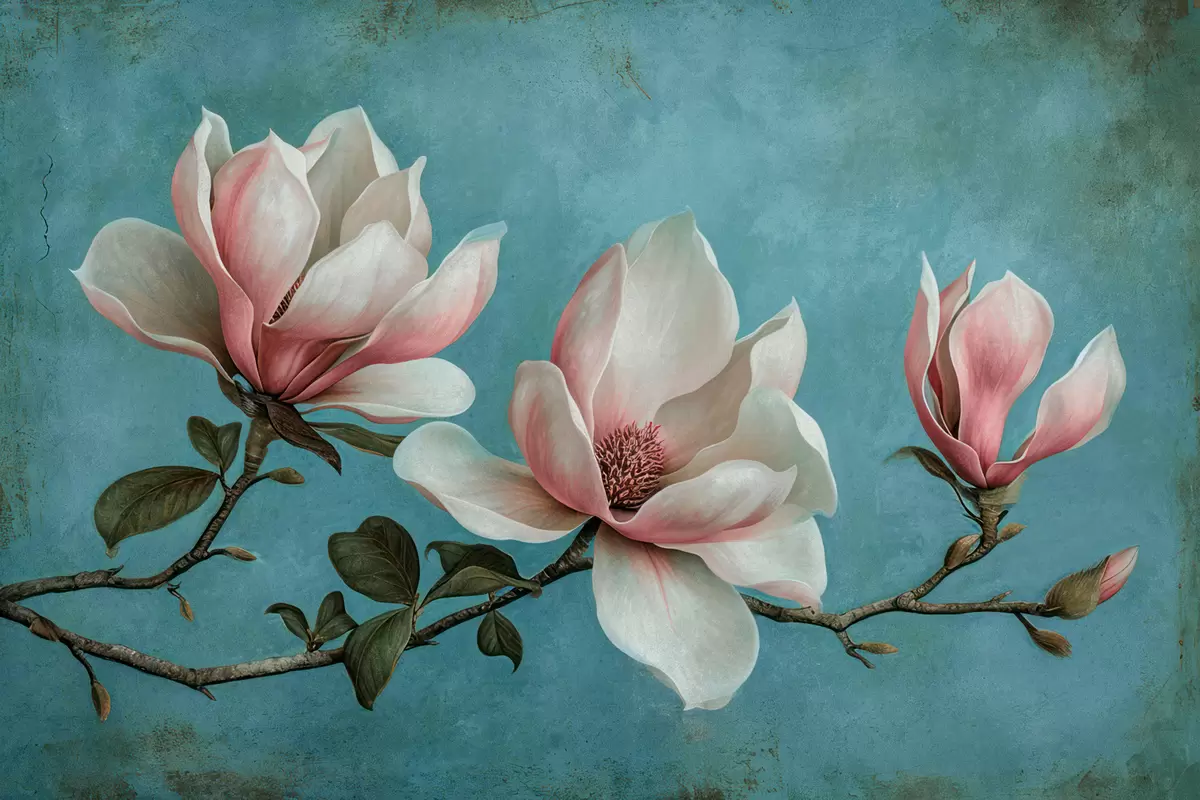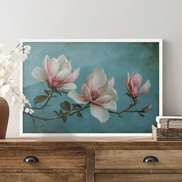 Plakatas Švelnūs žiedai ryškiame fone f37451