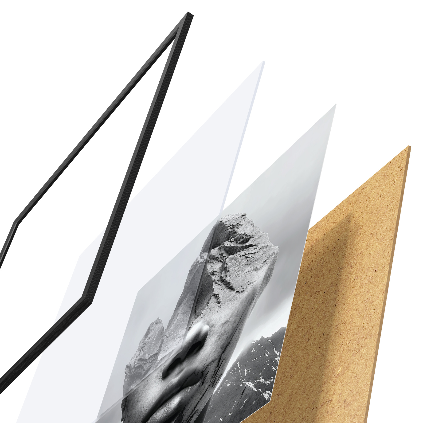 Plakatą sudaro rėmas, pleksiklas, atspausdintas vaizdas ir medžio drožlių plokštės pagrindas. Plakatą galima iš karto pakabinti ant sienos dėl kitoje pusėje esančių laikiklių.
