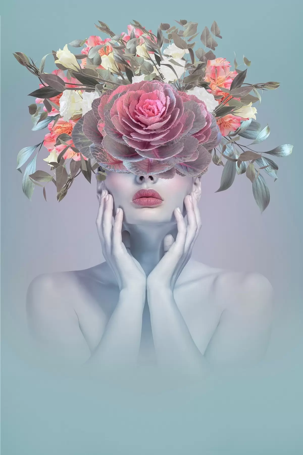 Plakatas Moteris su gėlėmis ant galvos Ne f37479