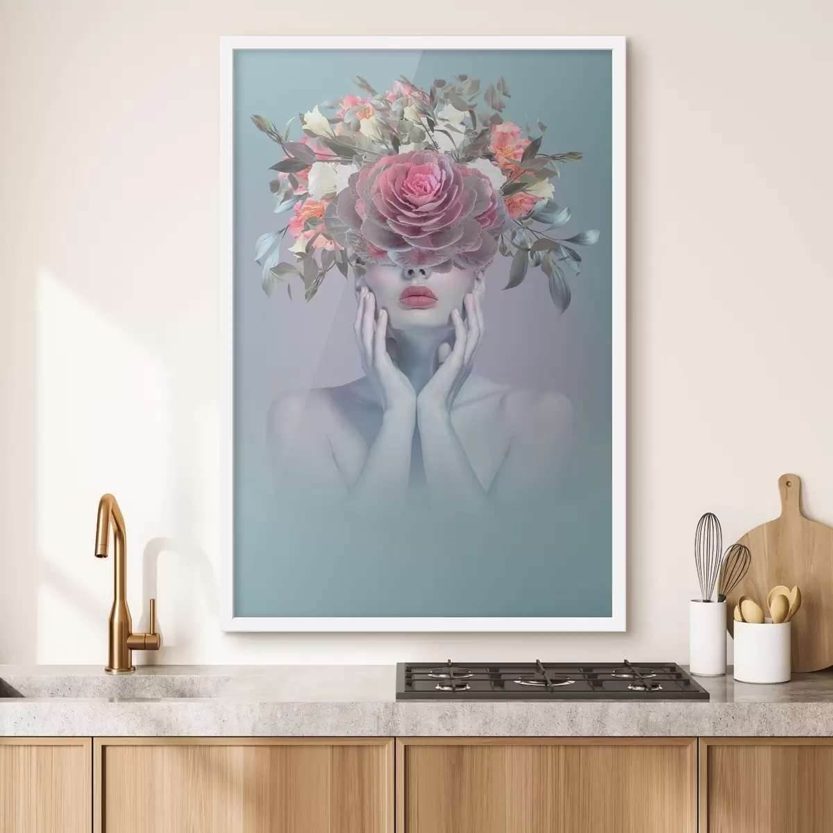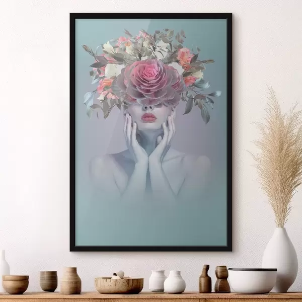 Plakatas Moteris su gėlėmis ant galvos f37479