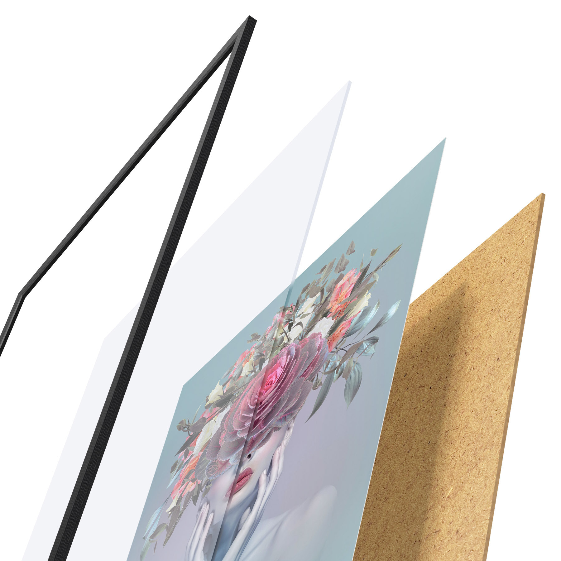 Plakatą sudaro rėmas, pleksiklas, atspausdintas vaizdas ir medžio drožlių plokštės pagrindas. Plakatą galima iš karto pakabinti ant sienos dėl kitoje pusėje esančių laikiklių.
