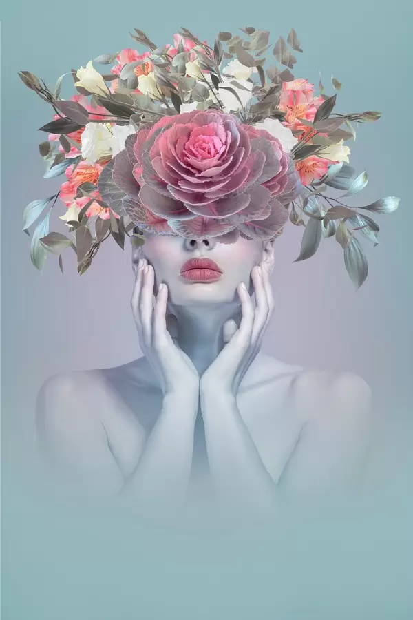 Plakatas Moteris su gėlėmis ant galvos f37479