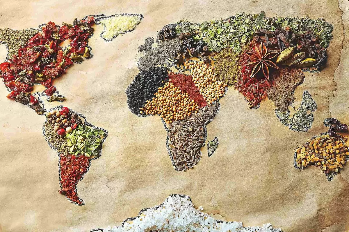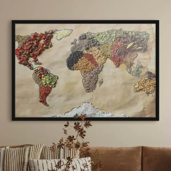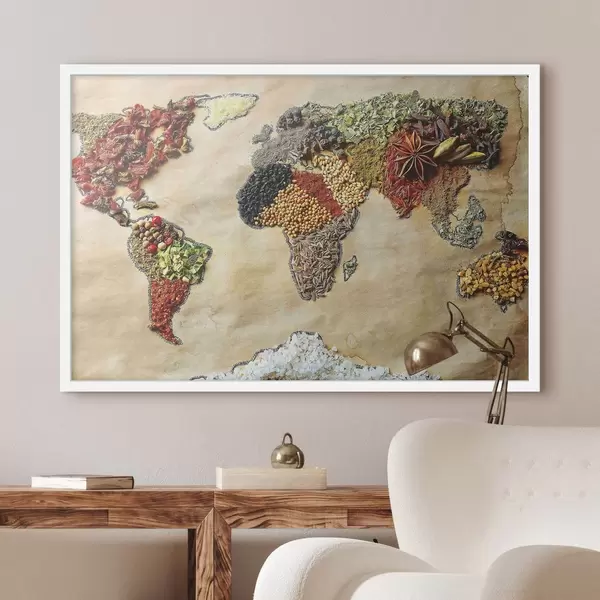 Plakatas Pasaulio žemėlapis, sudarytas iš skirtingų prieskonių f37486