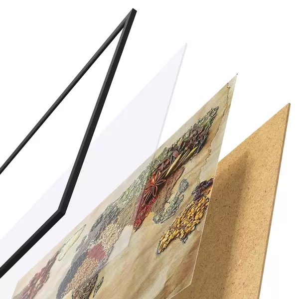 Plakatą sudaro rėmas, pleksiklas, atspausdintas vaizdas ir medžio drožlių plokštės pagrindas. Plakatą galima iš karto pakabinti ant sienos dėl kitoje pusėje esančių laikiklių.