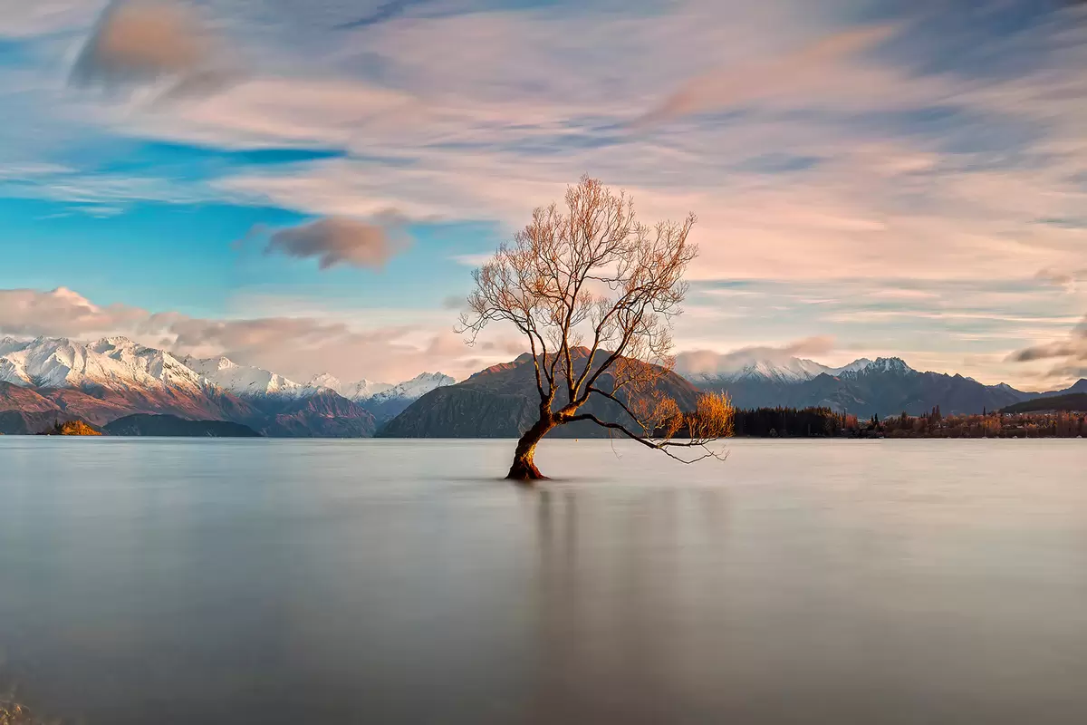 Plakatas Vienišas medis ramioje kalnų vietovėje f37487