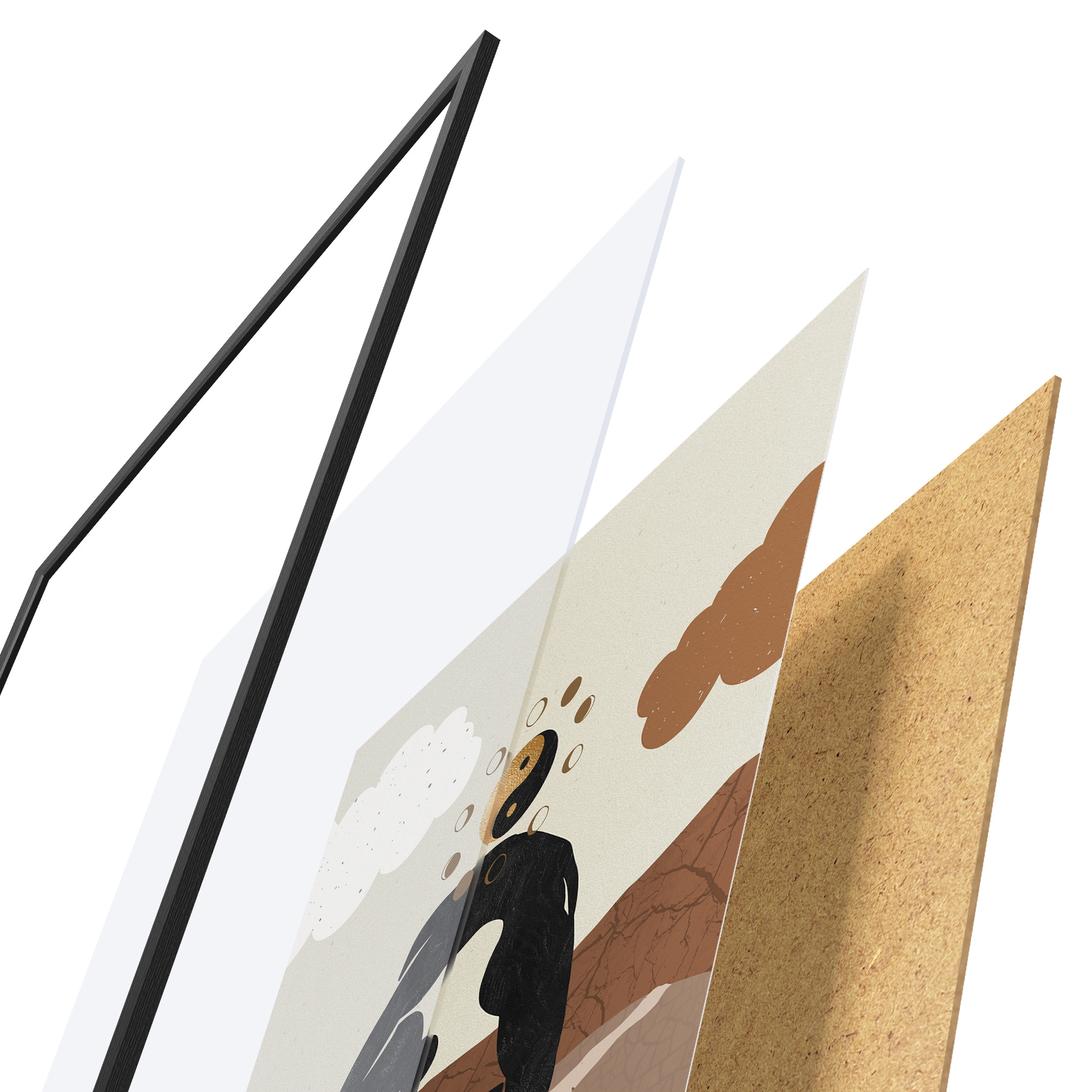 Plakatą sudaro rėmas, pleksiklas, atspausdintas vaizdas ir medžio drožlių plokštės pagrindas. Plakatą galima iš karto pakabinti ant sienos dėl kitoje pusėje esančių laikiklių.