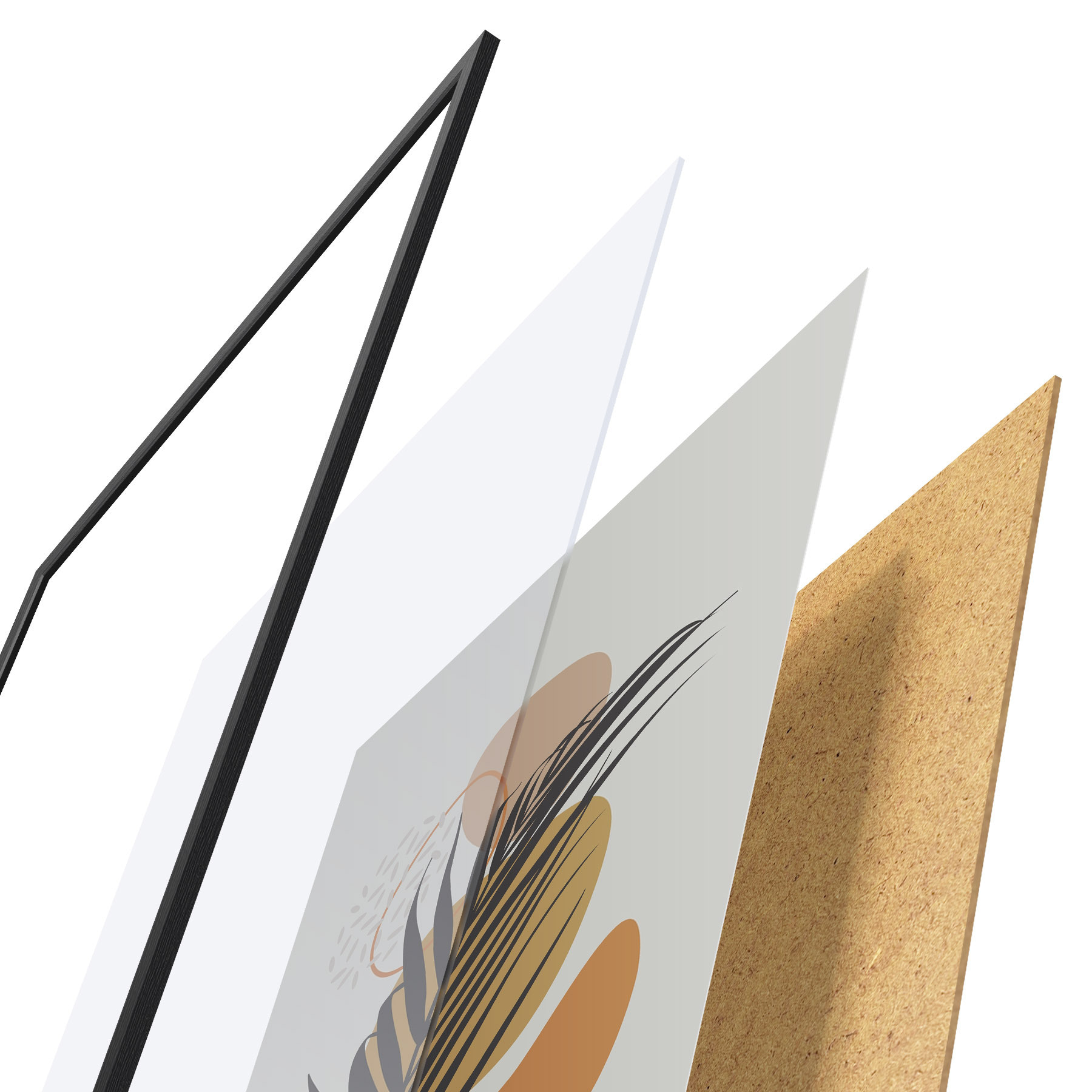Plakatą sudaro rėmas, pleksiklas, atspausdintas vaizdas ir medžio drožlių plokštės pagrindas. Plakatą galima iš karto pakabinti ant sienos dėl kitoje pusėje esančių laikiklių.