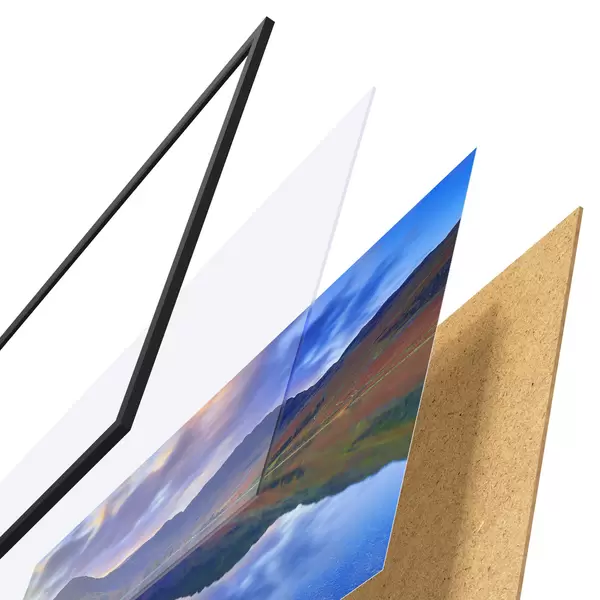 Plakatą sudaro rėmas, pleksiklas, atspausdintas vaizdas ir medžio drožlių plokštės pagrindas. Plakatą galima iš karto pakabinti ant sienos dėl kitoje pusėje esančių laikiklių.
