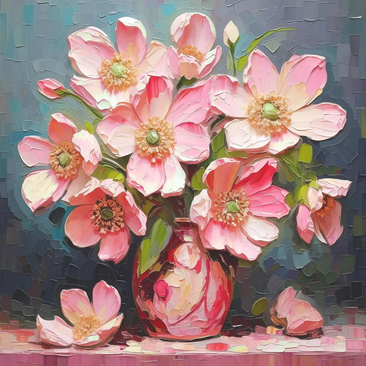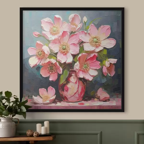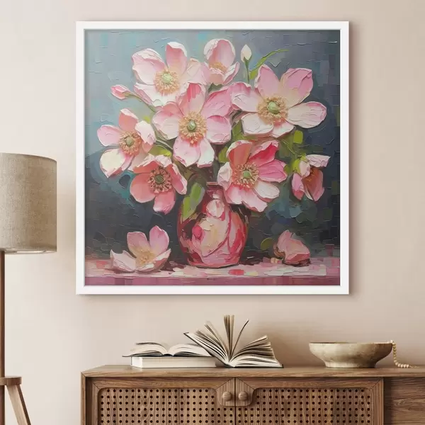 Plakatas Vaizdas, rodantis rausvas gėles vazoje f37558