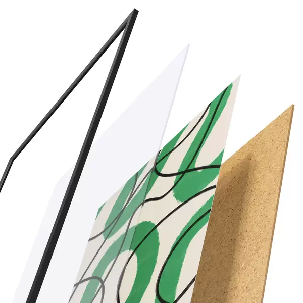 Plakatą sudaro rėmas, pleksiklas, atspausdintas vaizdas ir medžio drožlių plokštės pagrindas. Plakatą galima iš karto pakabinti ant sienos dėl kitoje pusėje esančių laikiklių.